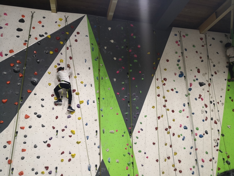 (研学同学参加攀岩训练课)