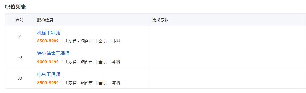 16 | 销售与技术服务类 | 销售工程师 | 本科 | 专业不限,理工类专业或有销售经验者优先 | 烟台 |