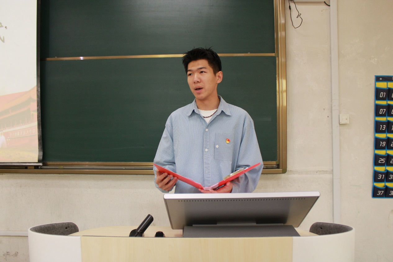 随后,预备党员代表牛思程发言。他回顾了自己曾经作为入党积极分子的时光,并提出,作为入党积极分子,各位同学应该积极进取,以赤诚之心对国,以积极之心进取,以坚定之心克难,尽自己最大的努力为党组织争光,在实现中华民族伟大复兴中国梦的新征程上,谱写更加壮丽的青春篇章!