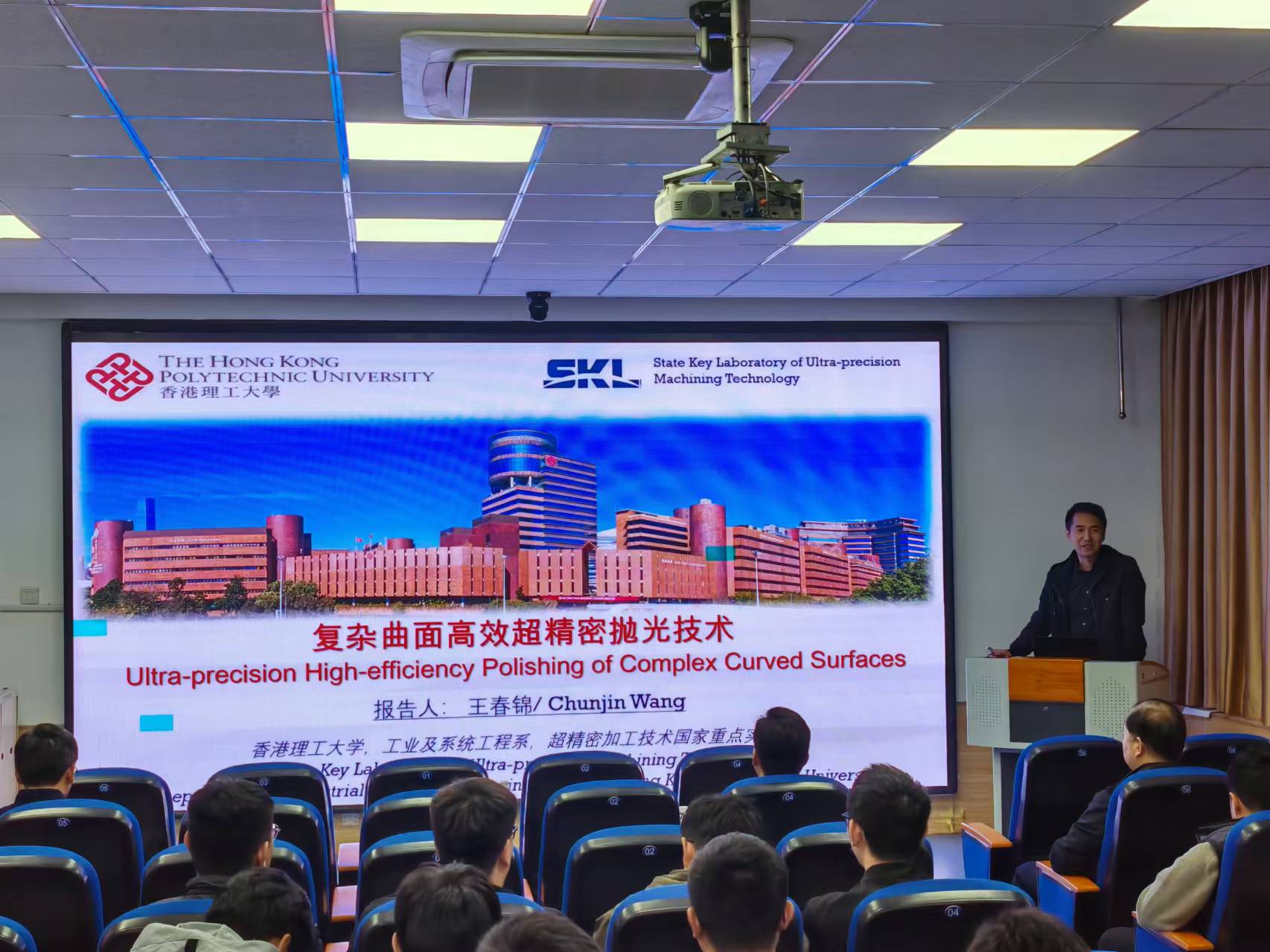 王春锦博士做题为《复杂曲面高效超精密抛光技术》的学术报告,报告围绕气囊抛光、多射流抛光、磁场辅助抛光等方面,介绍了最新研究成果及典型应用,同时结合自身科研经历,分享了如何从科学研究工作中提炼研究项目。