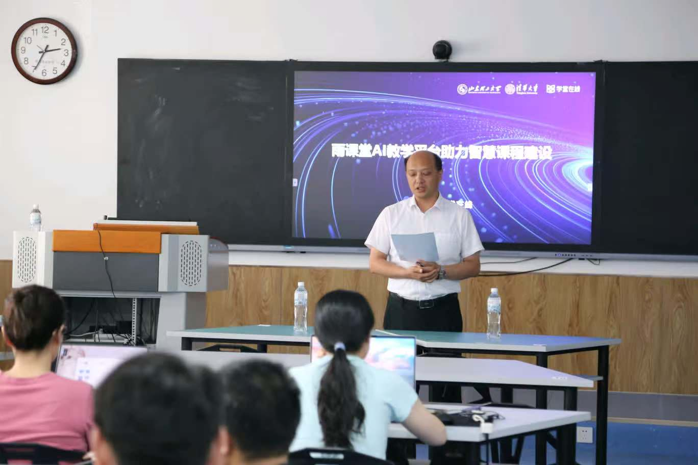 为推动人工智能与公司产品深度融合,创新教学模式,6月26日下午,公司在12号教学楼411教室举办AI教学工作坊,聚焦提升教师对智慧教学平台的应用能力,实现教学全流程数字化赋能。伟德victor1946副经理李志永、各系部主任、骨干教师及全体任课教师参加。活动特邀清华大学学堂在线项目总监杨杰山、项目经理李春雨,以及培训师许腾现场指导,围绕雨课堂平台功能实操、互动教学场景应用等内容展开专题培训,此次培训由李志永主持。