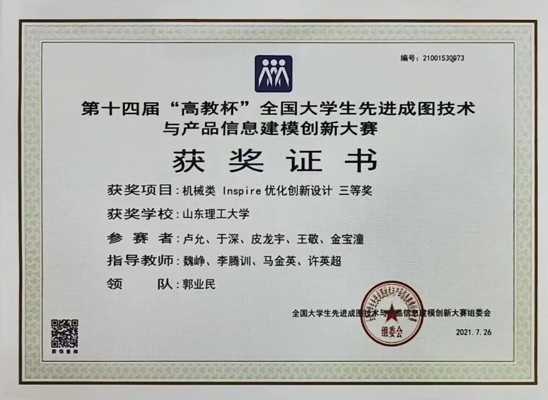在学科竞赛传承之路上,第十四届“高教杯”全国老员工先进成图技术与产品信息建模创新大赛暨第一届轻量化赛道开赛,魏峥老师率先带队出征,首战摘得国家三等奖,为赛道探索奠基铺路。伴随赛事推进,秦榛老师接任主力。作为机械学会优秀指导教师,秦榛老师在产品轻量化设计教师培训获得一等奖 ,凭扎实专业接力前行,带领员工稳步突破,从国三、国二一路奋进至国一,机械学会指导老师接力书写轻量化设计与Al应用赛道的成长佳话。