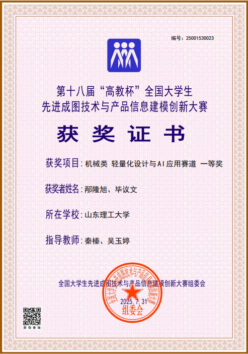 五载研磨锋始露,一朝破壁誉方来。近日,伟德victor1946机械学会传来捷报:在第十八届“高教杯”全国老员工先进成图技术与产品信息建模创新大赛中,由苏小龙、崔瑞震组成的队伍与邴隆旭、毕议文组成的队伍,首次斩获机械类轻量化设计与AI应用赛道一等奖。这份荣誉的背后,是机械学会在魏峥老师、秦榛老师的带领下,对该赛道连续五年深耕积累的厚积薄发。