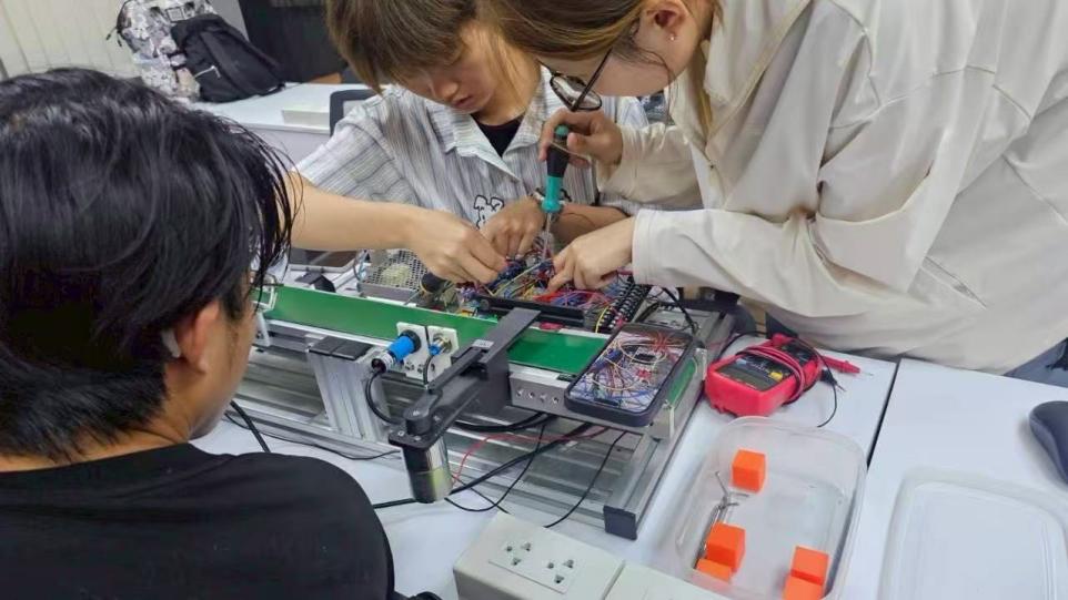 研究生阶段,更加注重实践锻炼。Python课程与PLC编程课程则更侧重“即学即用”的技能培养。在Python课堂上,研究生们围绕“数据可视化”等主题,用Matplotlib库制作动态分析图表;PLC编程课程中,大家以“简易金属冲压机”为目标,基于三菱PLC,从梯形图编程到硬件接线调试,全程独立完成控制系统搭建。