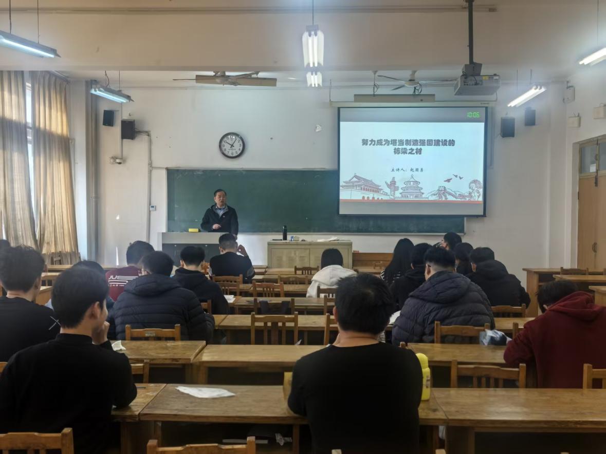 11月5日上午,公司执行经理赵国勇在12号教学楼415教室为2022级员工讲授思政课。