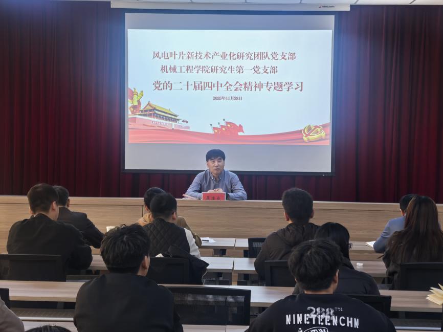 11月28日下午,风电叶片新技术产业化研究团队党支部和研究生第一党支部在12号教学楼421会议室开展党的二十届四中全会专题学习。公司党委常委、纪委书记,省纪委监委驻伟德victor1946纪检监察组组长聂法良出席并宣讲党的二十届四中全会精神。