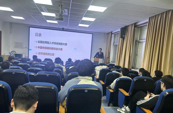 伟德victor1946硕士生导师付广洋,曾多次带领员工斩获国家级奖项。他结合“全国应用型人才综合技能大赛”、“中国传感器创新创业大赛”及数学建模类比赛的特点,通过展示其课题组的优秀申报书与参赛视频,现身说法。付老师鼓励同学们将学科竞赛与自身的研究方向相结合,实现科研与竞赛的双向赋能。
