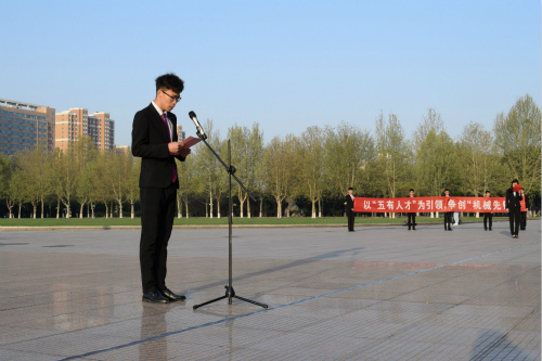 礼毕,员工会主席刘祥生以“不负青春,争做新时代有为青年”为主题发表演讲,他提出:身为机械学子,应牢记历史使命,弘扬理论联系实际学风;同时,深刻领会新时代中国特色社会主义思想的精神实质和丰富内涵,发扬广大青年的勇气和锐气。随后,员工会副主席王存带领全体员工重温入团誓词。