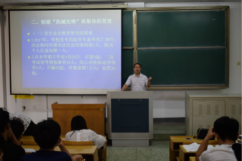 仪式伊始,钟丽霞就班级建设目标、建设对象、建设内容、实施步骤等方面向同学们介绍争创机械先锋班级建设实施方案。她讲到,班级要定期召开主题班会、主题团日活动,强化安全纪律、心理健康教育,加强文化、组织建设。