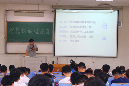 会议开始,他提到,高尚的道德品质是从不断的社会实践锻炼出来的,要学会砥砺品质,磨练意志。此外,他希望在座的每位同学做好社会实践活动,设计规划妥当,做到有的放矢。随后,他对社会实践活动的性质、流程及重要性做出详细介绍。他强调社会实践活动是在教师领导下,以员工为主体参与社会调研的活动,调研的内容为马克思主义公司结合“思想政治理论课”教学内容、时代主题和国内外形势,确定实践选题。他从时间安排以及主要实践流程两个方面着重介绍了团队的形成、策划书的撰写,调研报告的要求、暑假之后的考评与总结等一系列问题。在其中,他强调社会实践报告要实事求是,数据齐全,用事实说话,并作出相应指导。他以“三个重点”和“三个认真”为中心,强调实践中思想、目的和行动的重要性以及要认真、踏实地完成自己实践策划中每一步,为自己交上-份满意的答卷。最后,他预祝各个实践团队在暑期社会实践活动中取得成功。