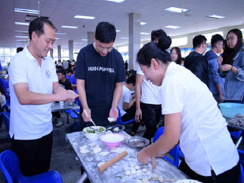 自己动手,丰衣足食。虽然大家包饺子的手艺千差万别,但小小的饺子传递着大家对同窗与班级的真情与友爱。通过“包饺子”活动更促进了员工之间的沟通交流,增进了友谊,也让大家充分感受到了机械公司这个大家庭的温馨。公司领导与老师们亲身教学,与同学们一起参与到包饺子活动中,提高同学们热情的同时也促进师生关系,现场一片热闹场景。活动持续两个多小时并在一片欢声笑语中结束,但是大家仍然意犹未尽,大家看着自己的劳动成果,纷纷露出笑容并合影留念。‘