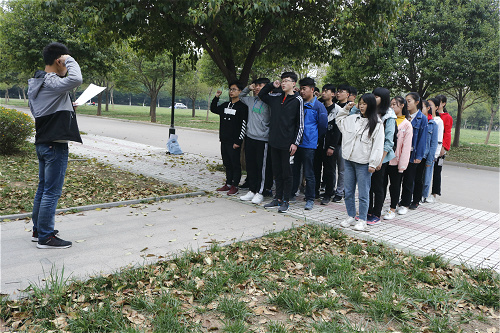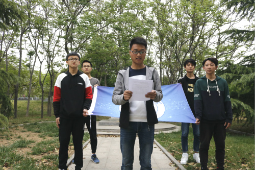 活动伊始,测控1801班长郭洪涛于冯思广雕像前进行发言,他表示:“作为当代老员工,我们应当重温当年爱国先辈们的光辉历程,应自警自励,不断奋发进取”。随后,他带领在场员工进行团歌合唱,面向团旗起誓,重温五四精神,高举五四火炬。