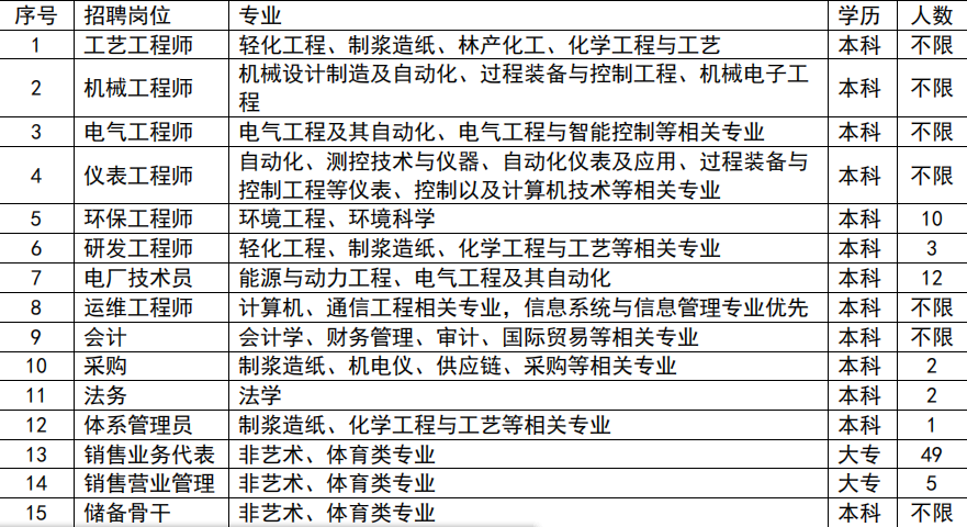 2、网站报名:请前往智联招聘/齐鲁人才网站,搜索“山东太阳纸业股份有限公司”,根据个人专 业选择合适的岗位进行投递,简历中务必包含个人近期彩色照片、联系方式及邮箱;