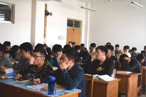 答辩伊始,谭常钊为全体入党积极分子介绍此次党员答辩会具体形式,他提到此次答辩包括主观题与客观题。由正式党员决定主观题,同时25名入党积极分子五人为一组,抽签决定答辩客观题。各入党积极分子依次按照抽签顺序上台进行答辩,全体成员从思想素养、入党动机、学习与模范带头作用等方面介绍了个人基本情况,从思想,学习和生活三大方面做出汇报,表达出坚定的入党信念与向党组织靠拢的决心。随后,在场各位主动开展自我评价,指出自身不足并对未来进行展望。