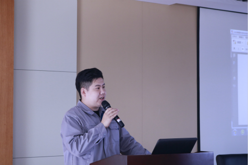 到达泰展机电科技股份公司后,市场部经理负责人吴强、技术部部长负责人王超、生产部部长赵子豪、公司副总经理党委副书记胡国厚依次进行发言。吴强介绍公司的主要概况及三大中心战略,即“以客户为中心,以关键零部件为中心,以技术创新为中心”。随后,王超做出发言,对公司主要产品如空气旋桨、燃油蒸发系统的组成、衍生产品进行介绍,并着重分析这些产品发展的国际形势。赵子豪阐述个人由国家一级运动员到一个管理者的转型历程,教导员工要坚持自我追求和选择适合个人的方向。最后胡国厚作出总结,提出未来几年企业发展目标,同时对在场各位表示殷切希望。