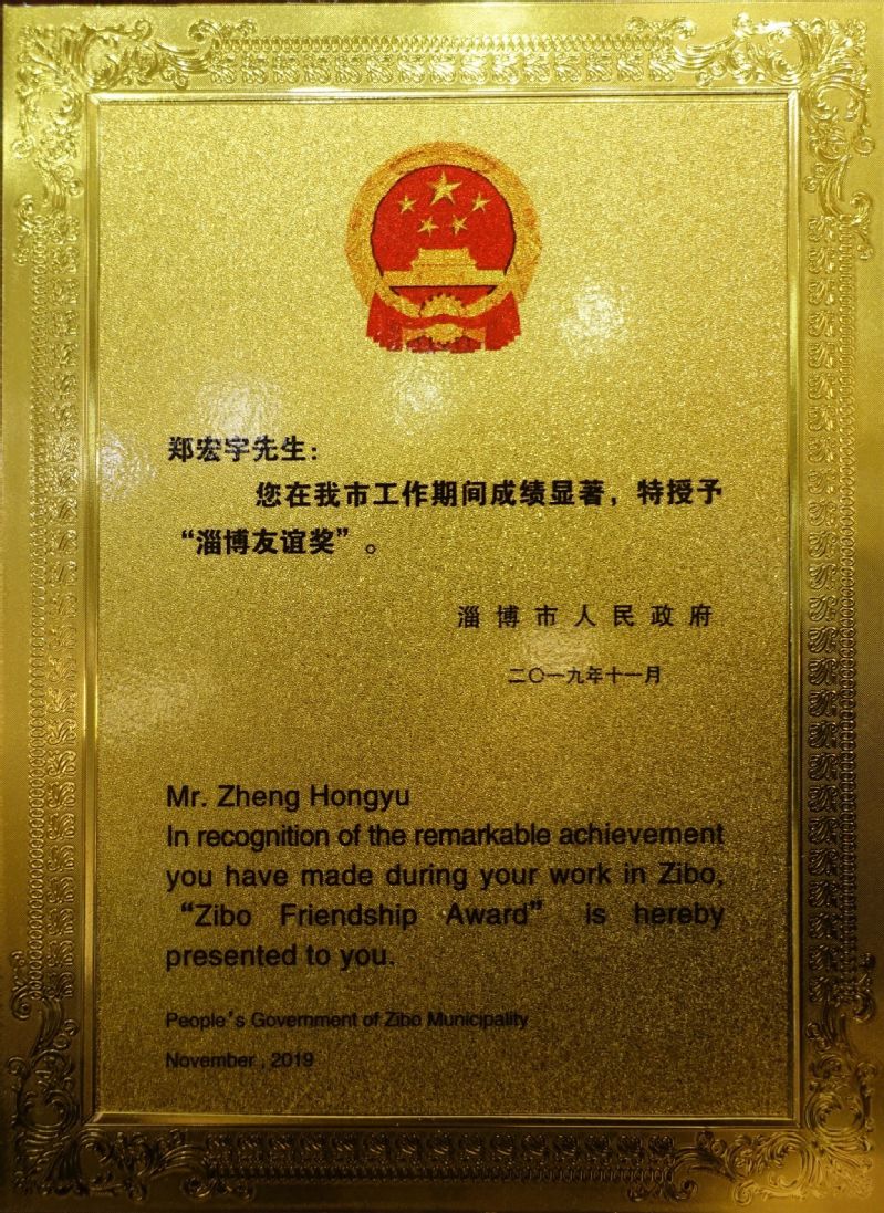 11月8日,第六届“淄博友谊奖”获奖名单揭晓,伟德victor1946郑宏宇教授获此殊荣。