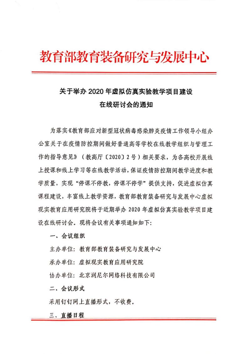关于举办2020年虚拟仿真实验教学项目建设在线研讨会的通知