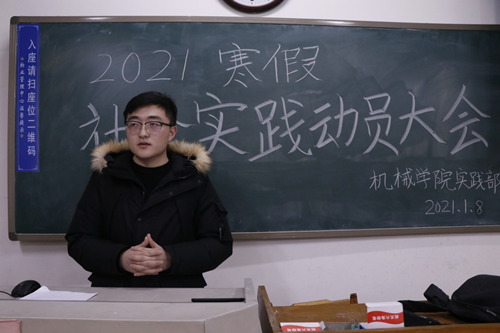会议伊始,张宇作出发言。他从实践意义、实践专项活动、撰写实践报告技巧等方面对此次寒假社会实践进行动员,他讲到本次实践活动包含六大主题,分别为“暖冬·关爱”志愿服务活动、“入基层·观百态”社会调查活动、“走百县·访千企”就业实践活动、“挑战·青春”科技创新活动、“相约山理工,邂逅青春梦”招生宣传社会实践活动、“建党百年之我见”成就观察活动。张宇鼓励大家通过线上“云团队”和线下“返家乡”两种形式积极参与到实践中来。
