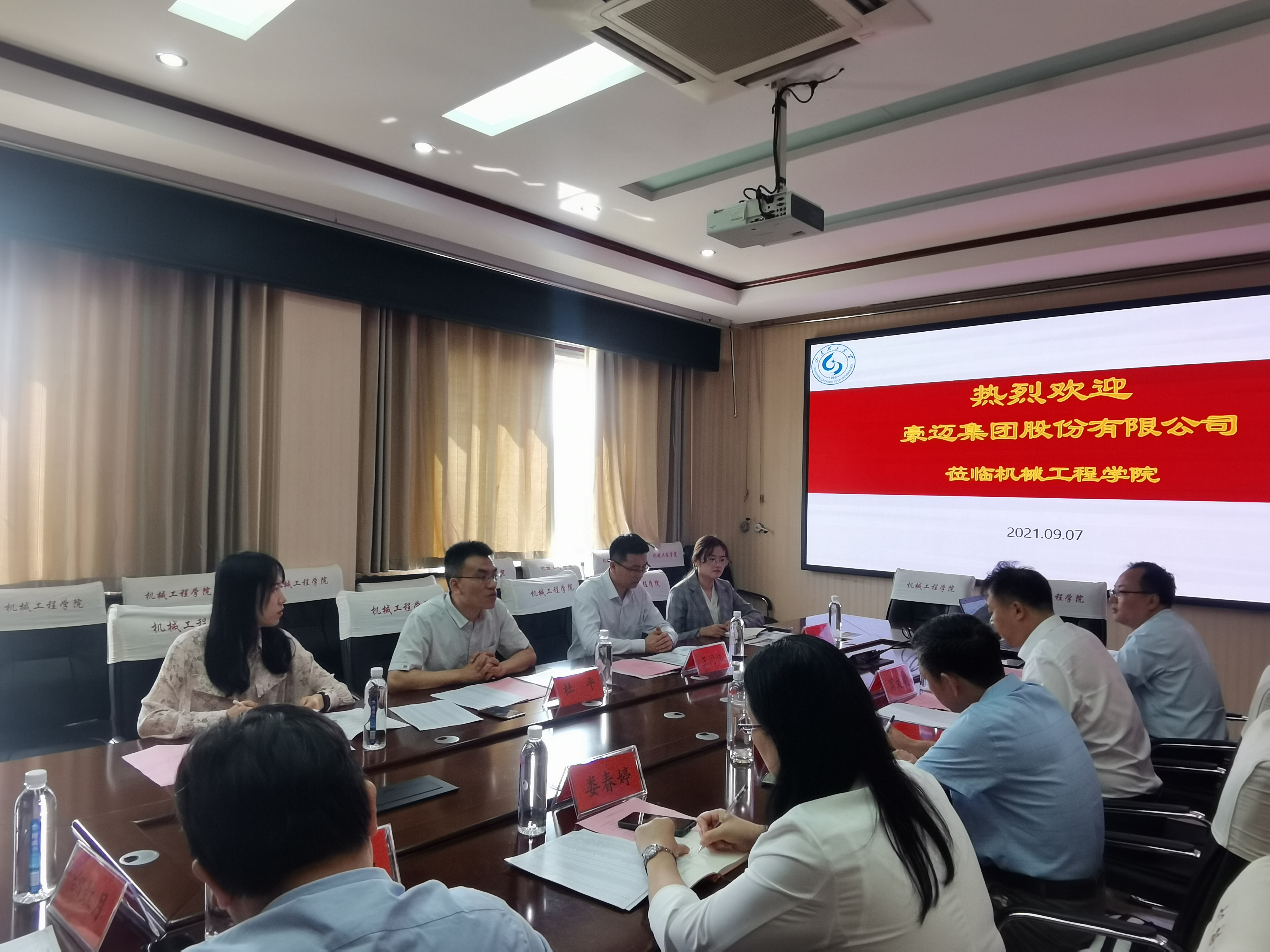 9月7日,豪迈集团人力资源部部长杜平一行4人来公司调研交流。公司党委书记徐启达,执行经理葛文庆,人才招聘处副处长、老员工就业指导中心主任娄春婷等有关负责人与杜平一行在12号教学楼五楼会议室进了座谈交流。