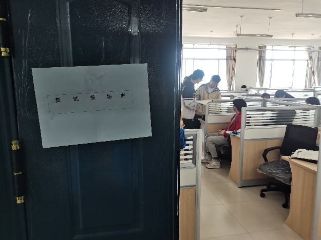 复试前一天志愿者们打扫好考场、调试好设备,然后按照复试流程,为考生模拟了整个复试环节,让考生们提前适应了复试氛围,了解了相关注意事项。复试当天,志愿者们早晨7点半在考场外做好准备,引导考生有序进行复试,一直进行到晚上10点。