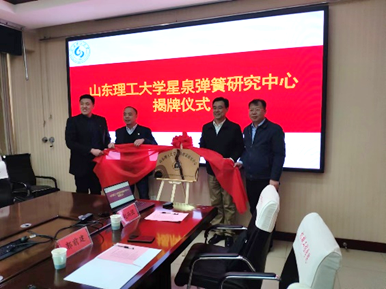 崔焕勇副董事长为冯以盛教授颁发了聘书,并与机械公司执行经理葛文庆、山东星泉科技有限公司董事长王泽锴、冯以盛教授共同为星泉弹簧研究中心揭牌。