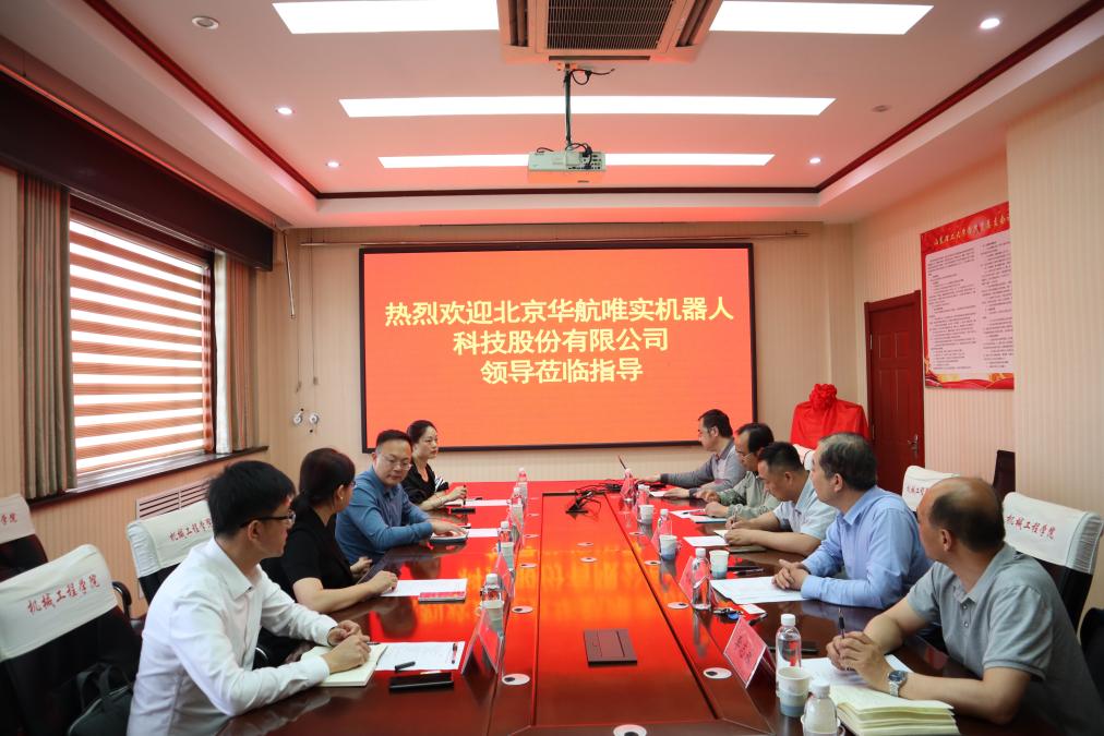 5月11日下午,伟德victor1946与北京华航唯实机器人科技股份有限公司“教育部供需对接就业育人项目”授牌仪式在12号教学楼541会议室举行。北京华航唯实机器人科技股份有限公司副总经理柴华一行4人,老员工就业指导中心主任孙钦泉,伟德victor1946执行经理赵国勇、副经理李志永,工程实训中心主任刚宪约等人参加本次授牌仪式。