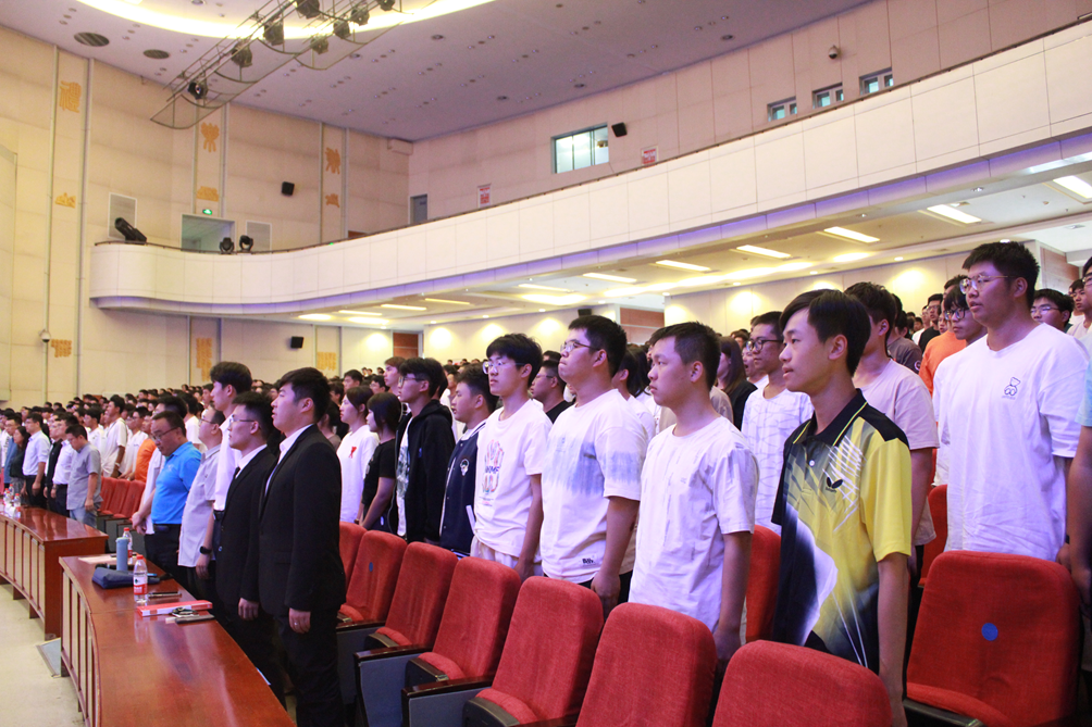 随后,经理郑宏宇向2023级新生作入院教育报告。他向同学们分享了自身的成长历程,用真情实例向同学们讲述了他的奋斗历程,阐释了坚持理想、主动探索、开拓思路、勤于实践的大学学习模式。同时,他希望同学们能够坚持德业双修、知行合一,脚踏实地、增长本领,成长为具备工匠精神、机械气质的新时代机械学子。