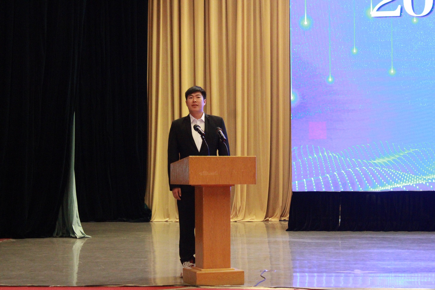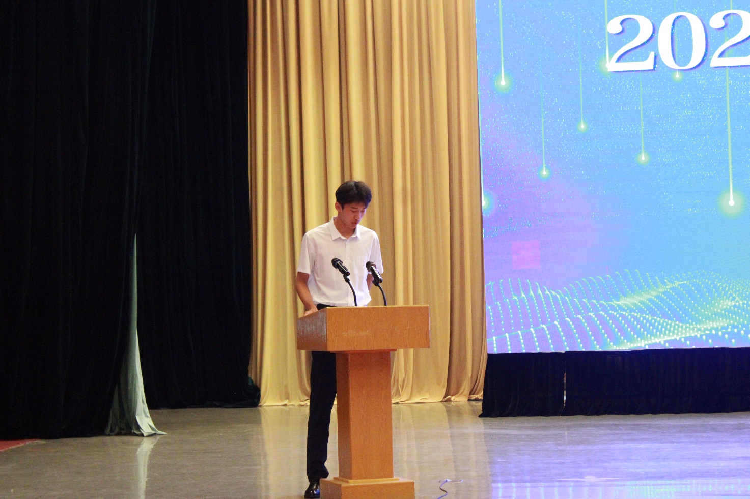 在校生代表王涛发言,他从自身经历出发向同学们提出大学规划。大一时要努力适应新生活,保持昂扬奋斗的姿态,磨练百折不挠的勇气,在员工组织中积极锻炼,养成良好学习习惯和自律精神;大二时要厚积薄发,学会自主学习,积极参与各类大赛和竞赛,将理论知识与实践相结合,做到知识体系的融会贯通;大三时要乘风破浪,多方面思考未来道路,坚持自己的目标,保持好心态,积滴水以成河海,累微尘以成峻极。