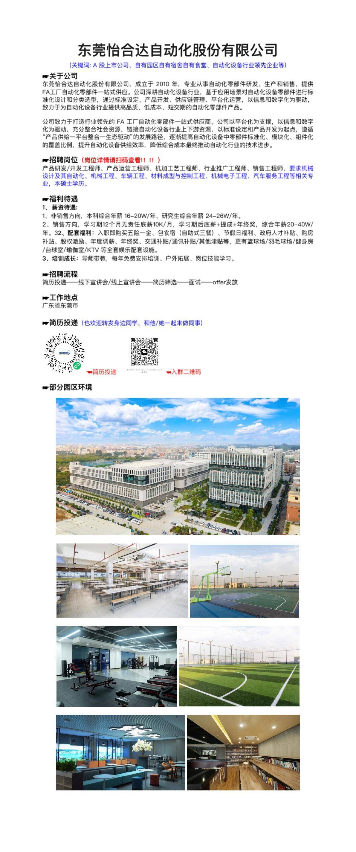 东莞怡合达自动化股份有限公司(关键词: A股上市公司、自有园区自有宿舍自有食堂、自动化设备行业领先企业等)