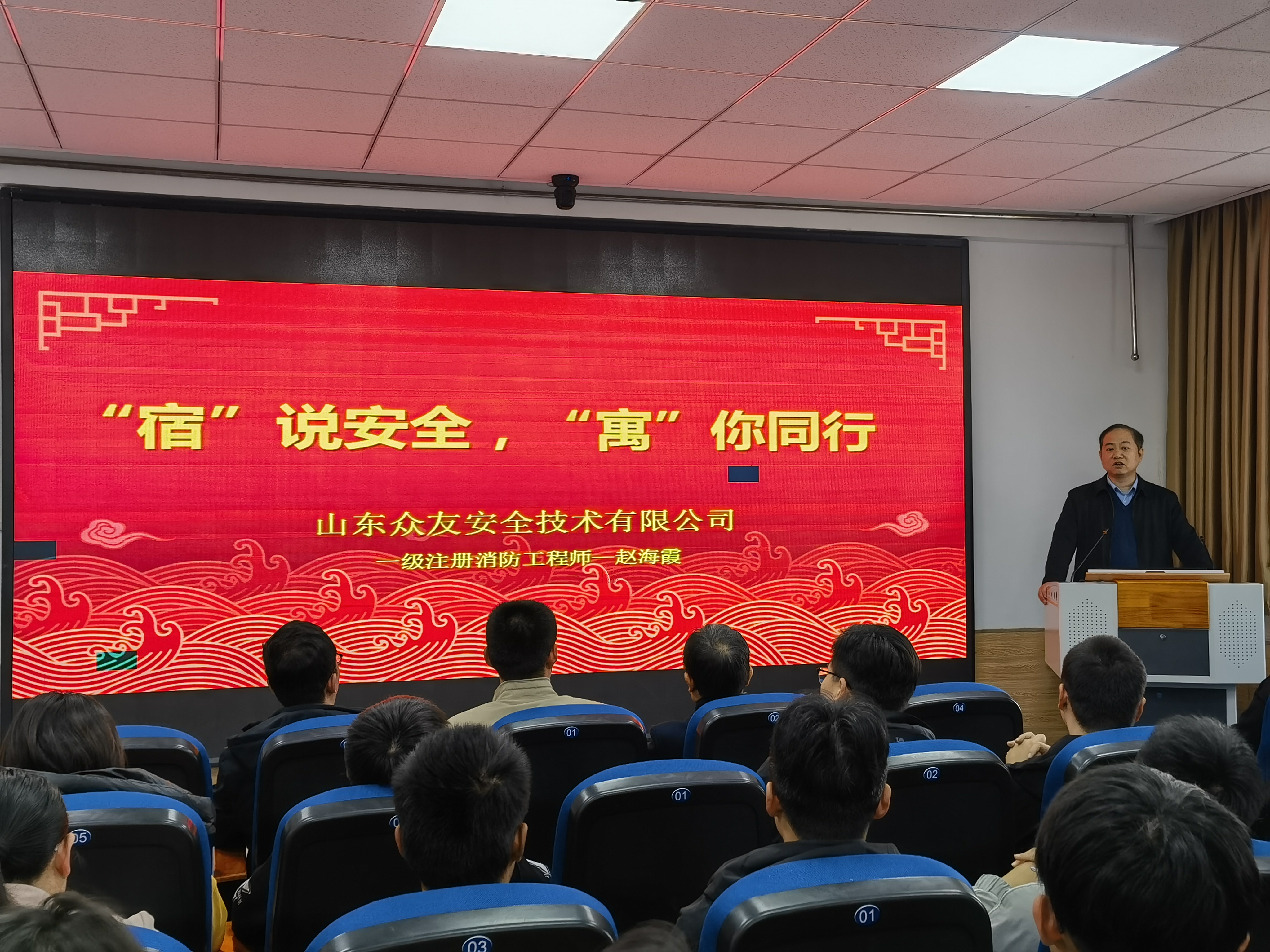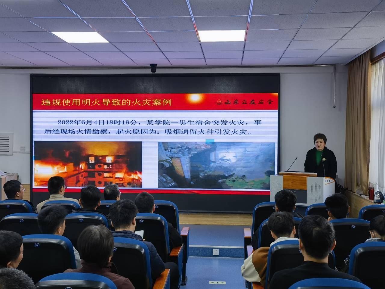 随后,消防专家赵海霞为师生开展“宿”说安全,“寓”你同行消防安全知识培训。赵工程师从火灾警示录、宿舍火灾自救措施、常用灭火设施、器材及消防安全“四个能力”方面,引用大量生活真实案例讲述了由于缺乏消防安全知识而引发的安全事故,并通过理论讲解与典型案例相结合的方式,为在场师生上了一堂别开生面的消防安全课。同时,围绕火灾诱发的主要因素以及发生火灾后的不同救助方法,从火灾的防范、逃生、自救等方面详细介绍了怎样预防火灾,如何面对火灾的经验和方法,教育师生从生活细节入手,关注消防安全,预防火灾事故的发生,在场师生深受启发。