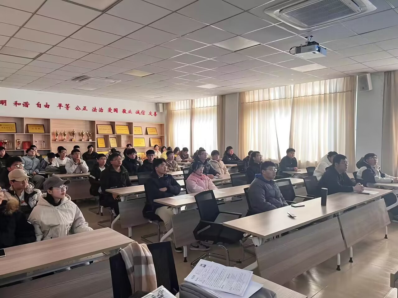 公司招聘负责人首先围绕今年就业形势、春招区别、企业等级划分、优秀应聘者素质等环节开展交流分享。随后对公司进行了简单介绍,并就本次招聘岗位、晋升空间、福利待遇、招聘流程等环节进行了详细分析。招聘现场,同学们在简历制作、笔试范围、面试要求等方面与招聘负责人进行深入交流讨论。