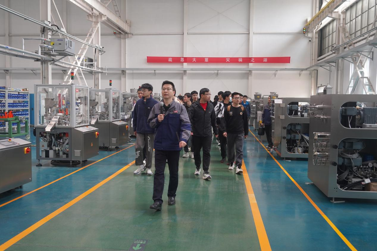 中午员工食堂为同学们提供了精美的午餐。用餐后,实地参观了公司创新工艺实验室、智能制造生产车间,近距离了解了固体制剂制药装备及创新科研成果。