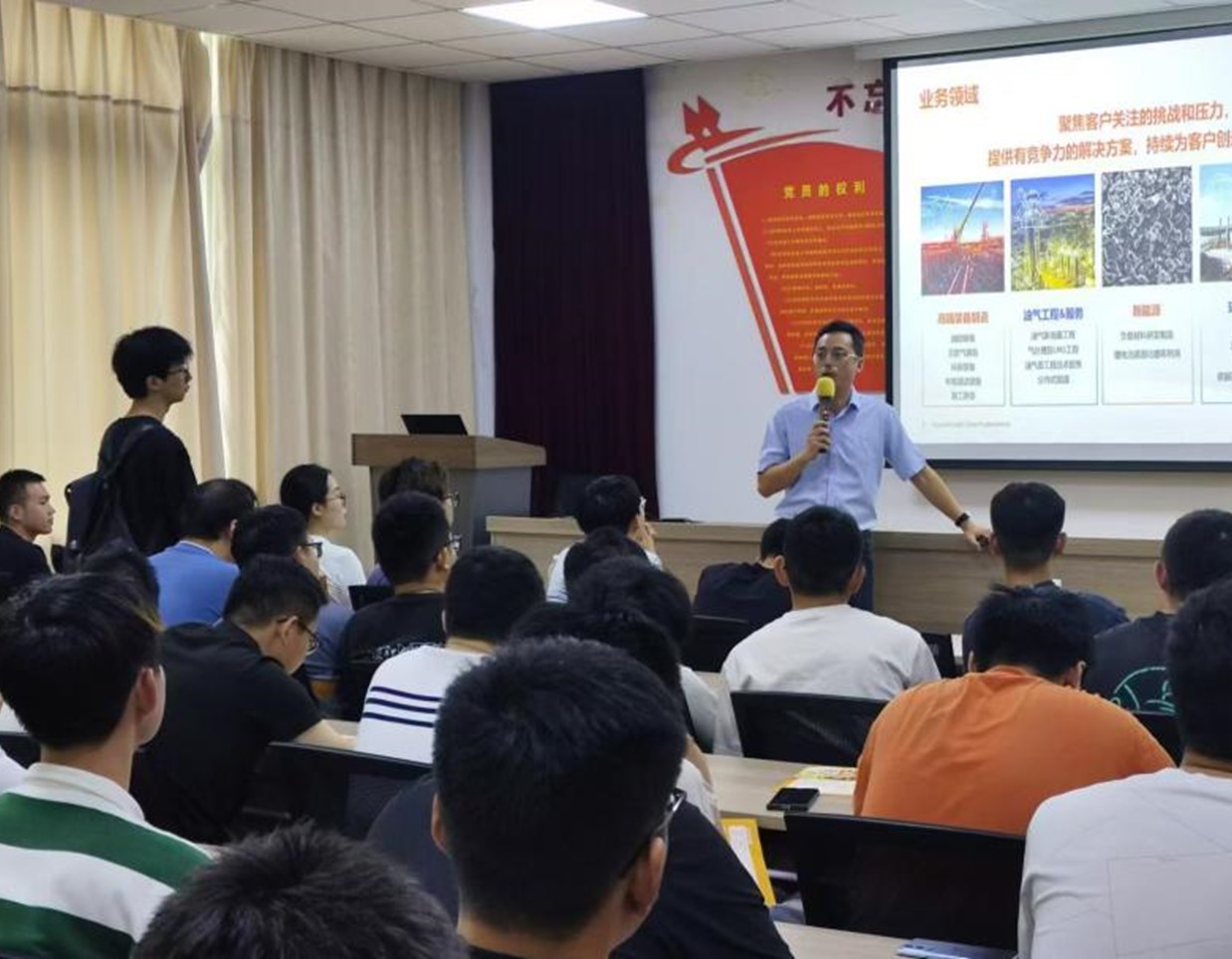 杰瑞股份宣讲负责人基于企业发展历程、发展规模与业务领域等,围绕人才培养、薪酬福利、工作环境等多个层面阐述,并就本次招聘岗位和应聘流程等环节进行了详细分析,帮助毕业生全面了解就业环境。随后围绕优秀应聘者素质等环节开展交流分享。招聘现场,同学们在面试要求、面试安排、福利待遇等方面与招聘负责人进行深入交流讨论。