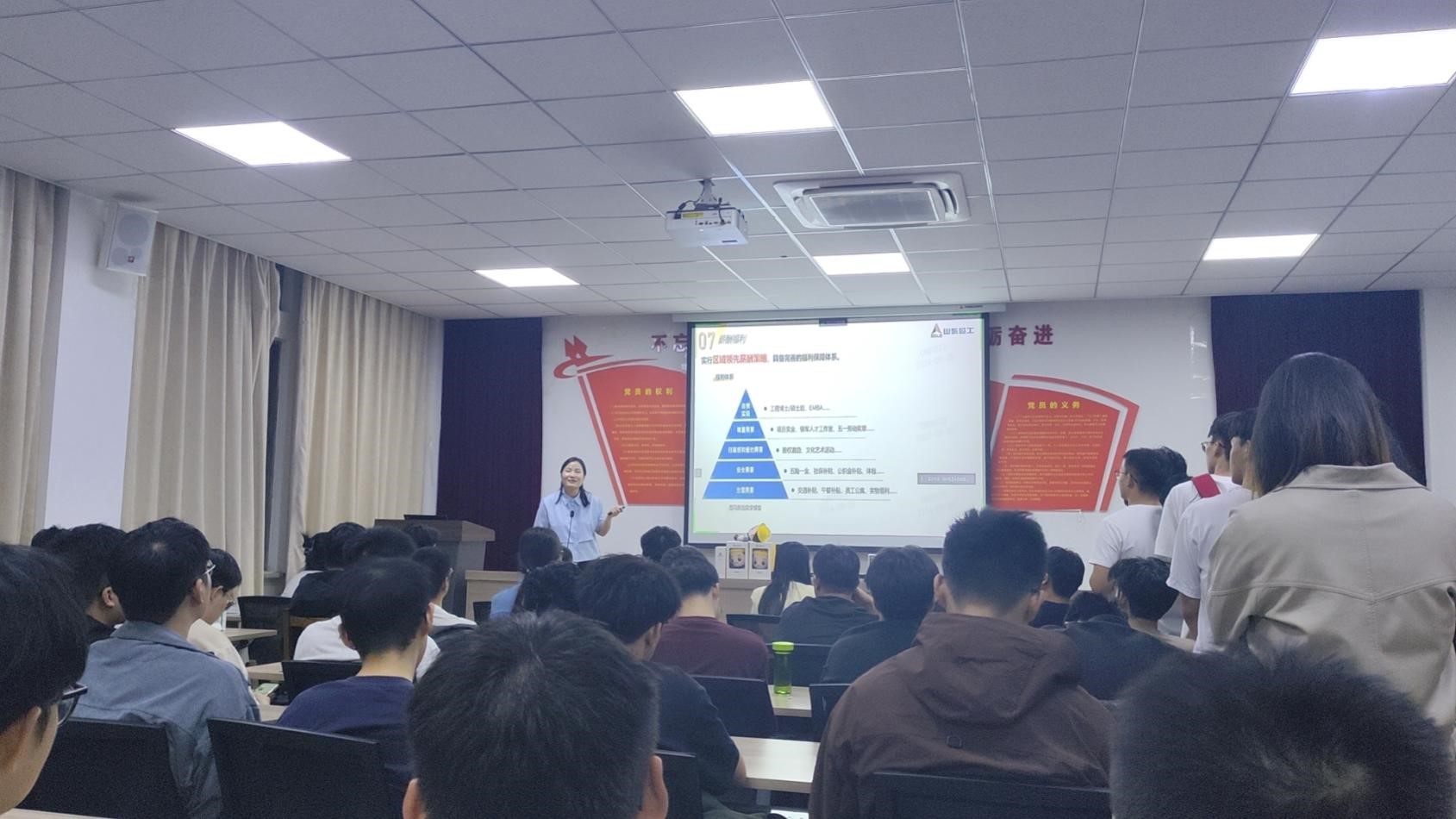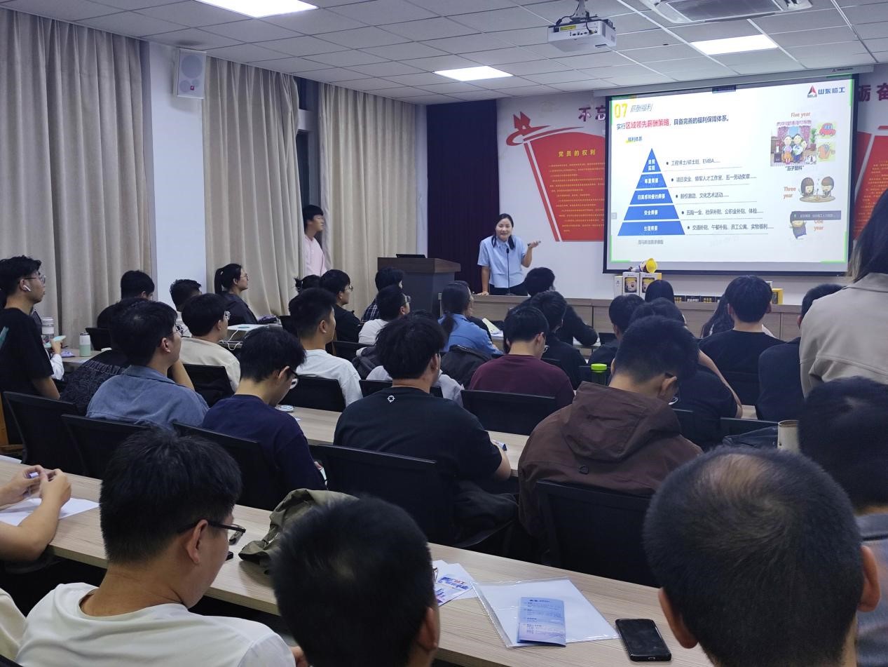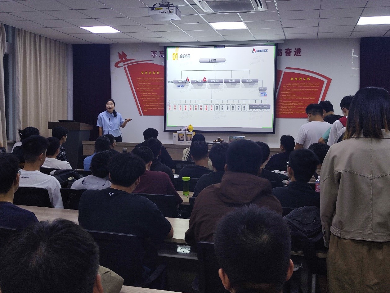山东临工宣讲负责人基于企业发展历程、发展规模与业务领域等,围绕人才培养、薪酬福利、工作地点等多个层面阐述,并就本次招聘岗位和应聘流程等环节进行了详细分析,帮助毕业生全面了解就业环境。宣讲结束后负责人围绕优秀应聘者素质要求等方面与同学们展开交流分享。