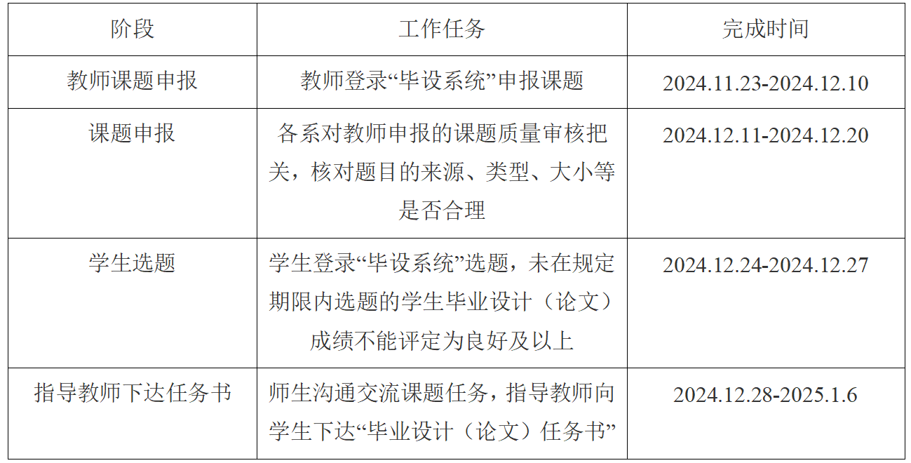 2025届本科毕业设计(论文)选题工作安排表,如下