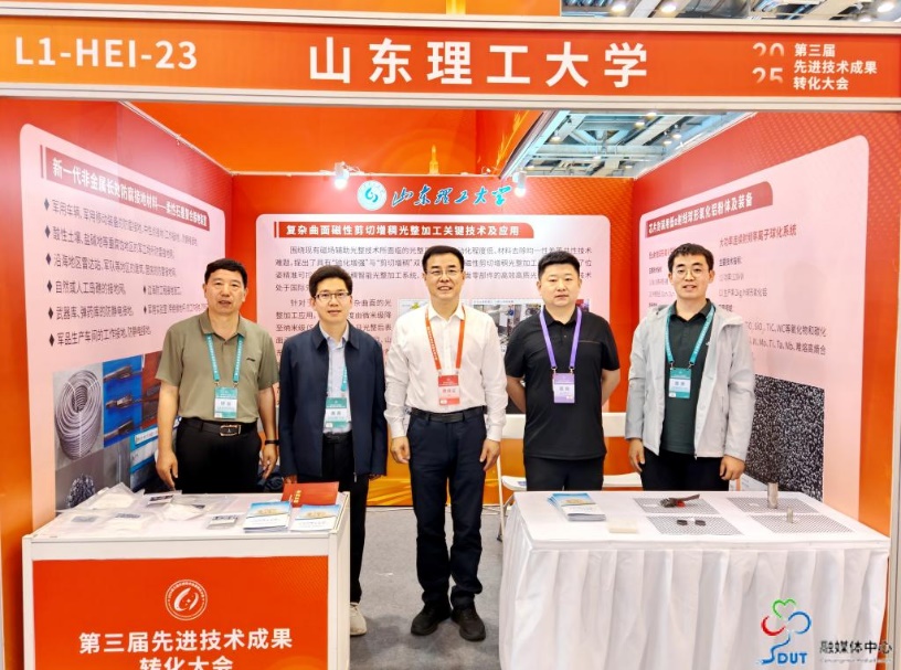 展会上,通过“实物展示+成果推介”的方式,两位教授展示了超精密加工技术、新材料等领域的创新研究成果,吸引了诸多参展人员咨询,并进行了深入交流。期间,山东省工业和信息化厅副厅长焉杰等领导一行亲临展位指导工作,要求高校教授把握本次交流机会,加强深度融合与协作,赋能科技成果转化和产业升级。